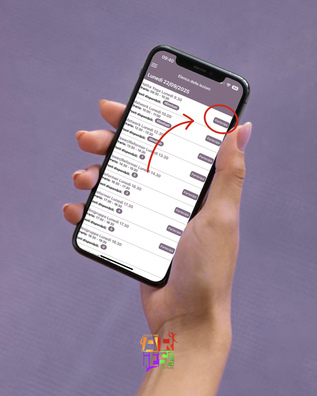 Seleziona la lezione che ti interessa e clicca su “Partecipa”.